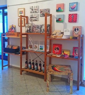 Finito di allestire facciamo un giro, l'ambiente è fantastico, ci sono tantissime opere di tutti i tipi, quadri, fotografie, graffiti, sculture, installazioni, oggettistica, moda e c'è pure un